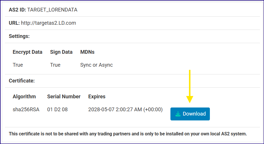 Loren Data’s innovative and robust AS2 platform allows for the current and new certificate to run in parallel until the new one has been successfully tested. This means you can download, install, and send a test with the new certificate at your convenience, without disrupting your production data flow. Once you send a successful test or production file using the new certificate, you will automatically be switched over on our network and your transition will be complete.