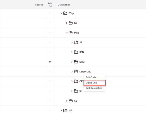 In Simplify, Clone Link allows you to add additional segments, records, fields, or elements to your destination map.