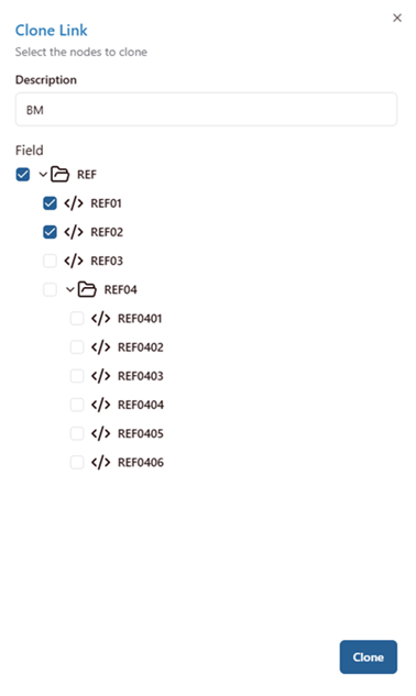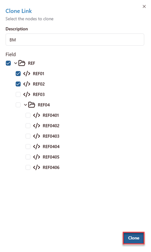 - Save the clone link: Click Clone button. The cloned link will appear in blue.