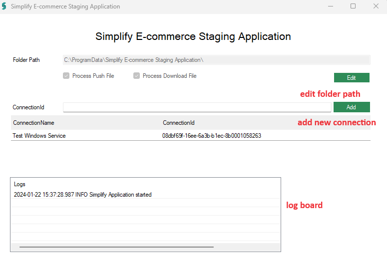 Contain Connection ID (match with Connection ID in the website) and URL to pull/push document.