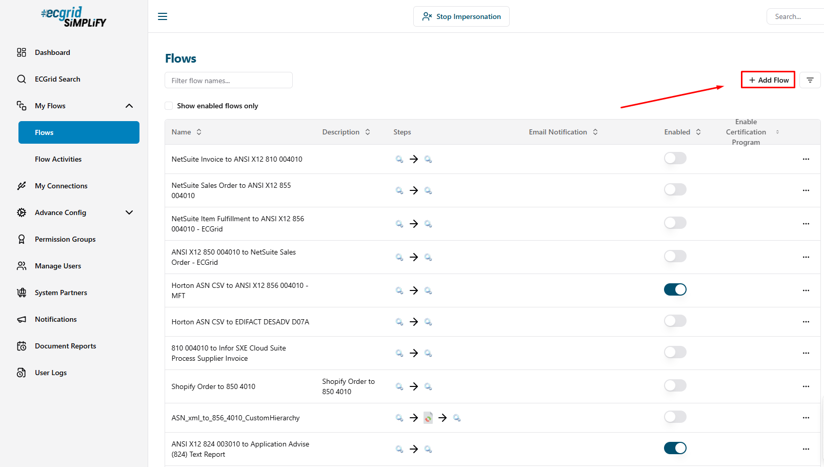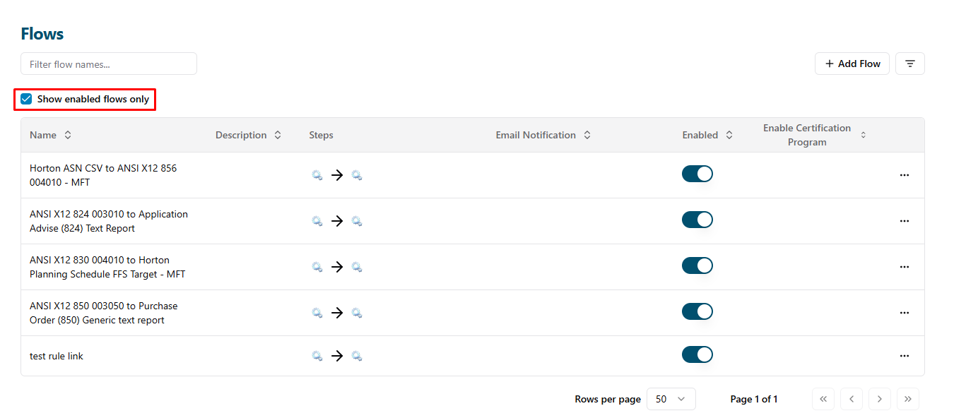 - To view unenabled flows: Select the “Show enabled flows only” checkbox.