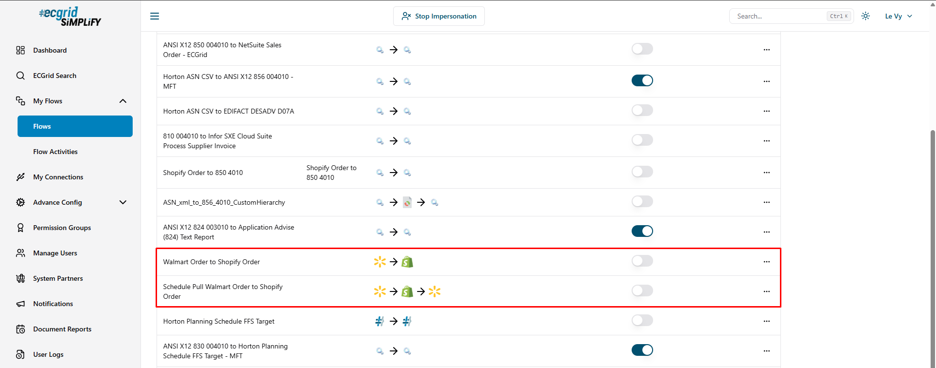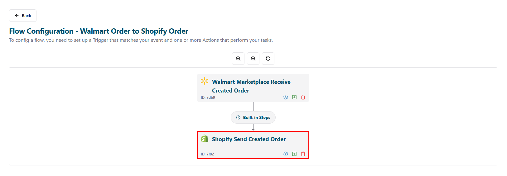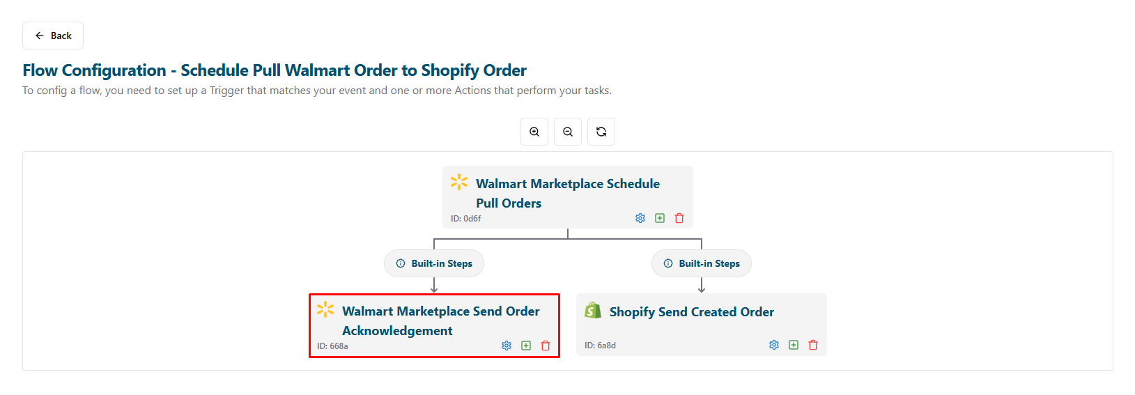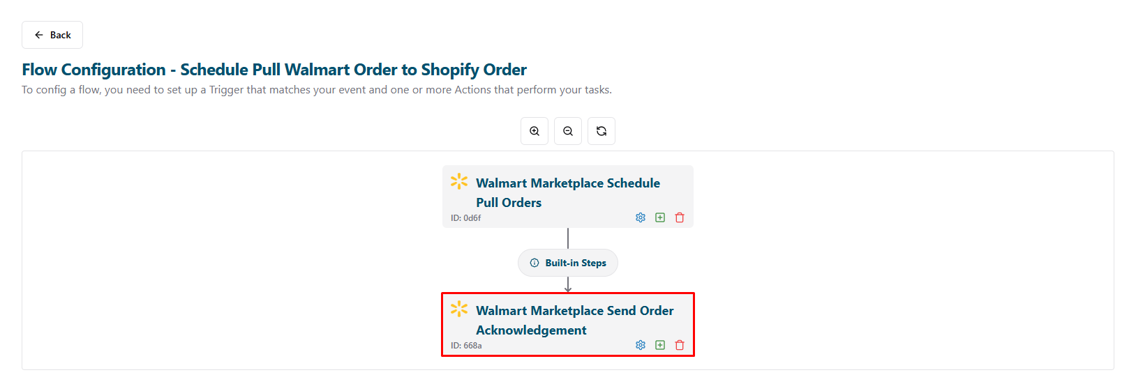 - After setting up the flow for Walmart Marketplace, return to the Flows page to enable the new flow: Click the Back button.