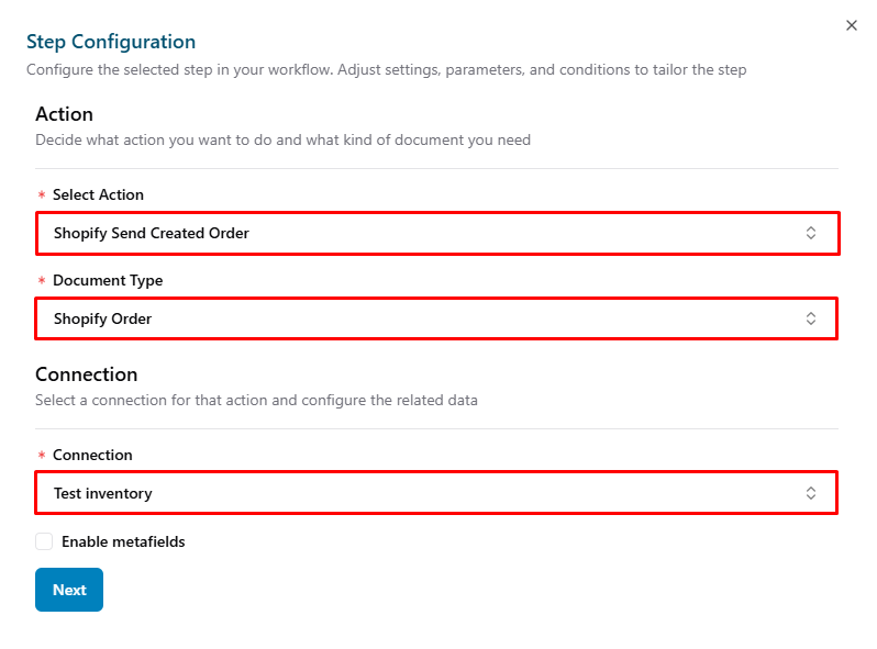 Enable Metafields: When enabled, the document will generate multiple metafields.