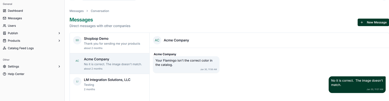Global Product Access includes a built-in messaging system so you can communicate with subscribers and other companies without relying on external email. All platform messages also trigger an email notification to the recipient company's contacts, ensuring nothing is missed.