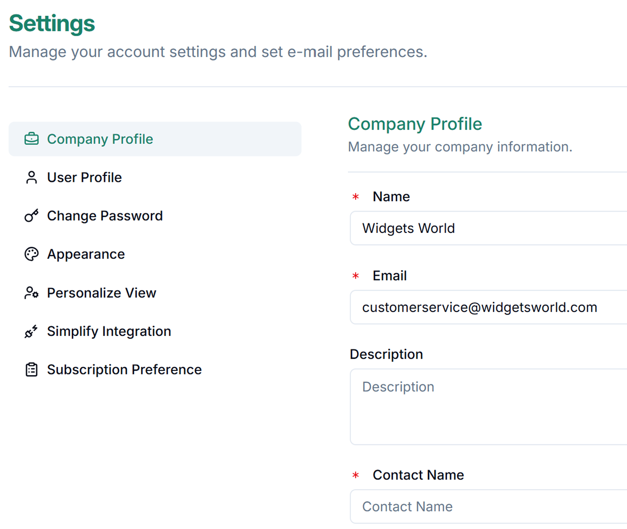 Configure your company profile, account preferences, and platform integrations.